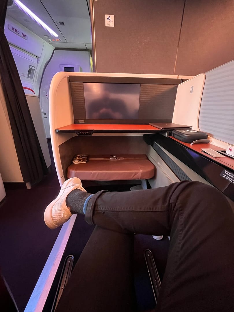 I’d had a stash of Alaska Airlines miles for a long time and finally found the perfect way to use them. Japan Airlines flights can be booked using Alaska miles, and our original plan was to fly in the three business class seats I found from New York to Tokyo to the Philippines/Singapore (we’re splitting up for a bit). Driving from Maryland to fly out of New York wasn’t ideal, but it was worth it for the experience of getting to fly together in business class. Each ticket was 65,000 miles and ~$50 per person, and Alaska Airlines gives you a free stopover when booking with miles, which meant we’d get to stop in Tokyo for basically as long as we wanted before continuing on.
